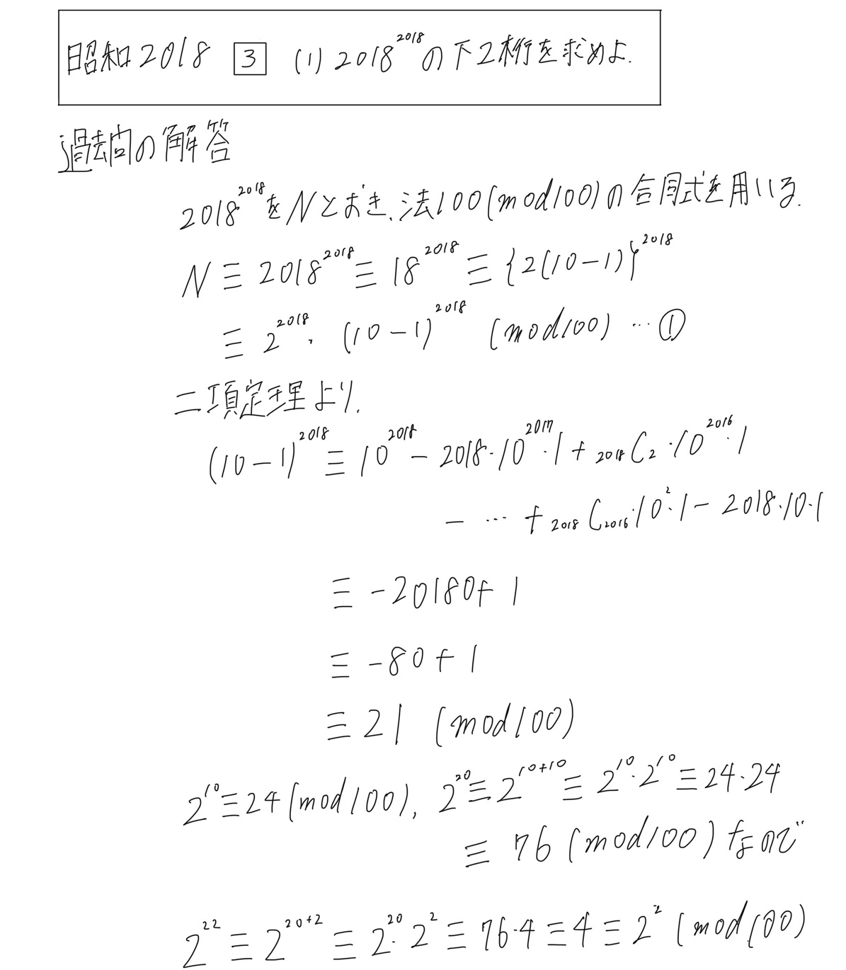 今回は下2桁を求める問題でした。